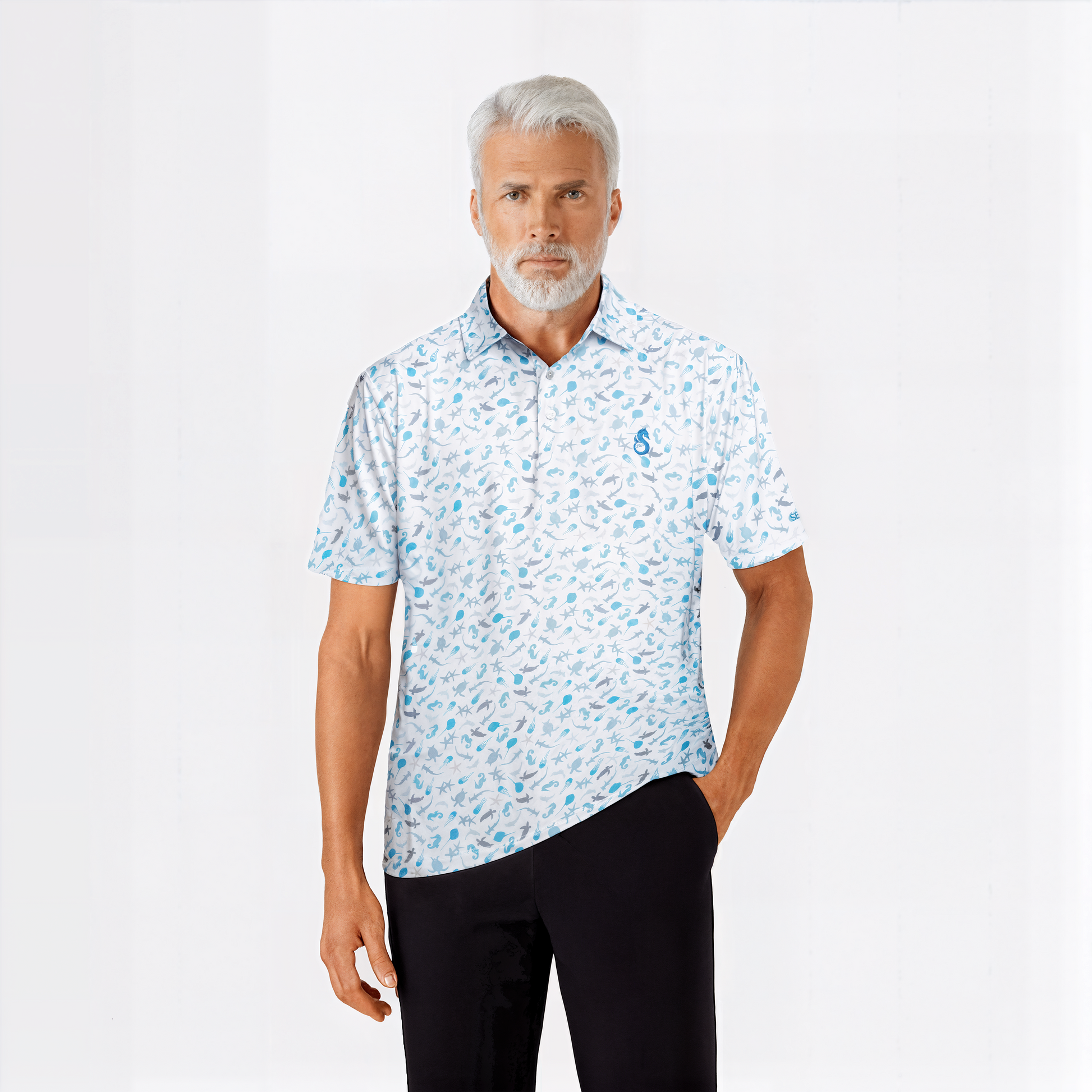 Make a bold statement on the course with the Sea Life Polo, where fun meets functionality. Made from our signature 86% recycled materials, these eye-catching designs feature custom sea-themed prints inspired by the beauty of the ocean.
