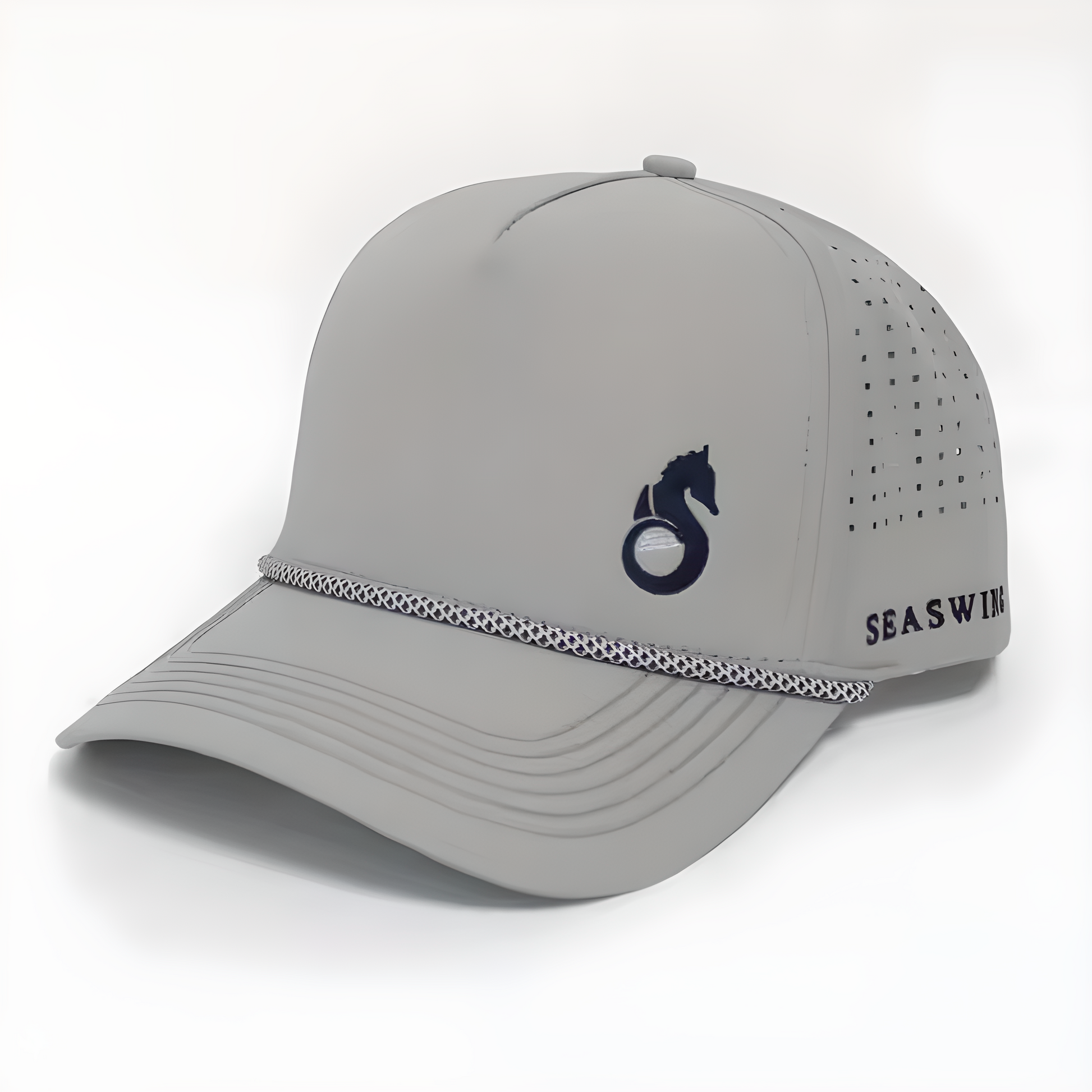 Lightweight, breathable, and made with 80% recycled fabric. Clean grey finish, adjustable fit, and built for all-day comfort on or off the course.